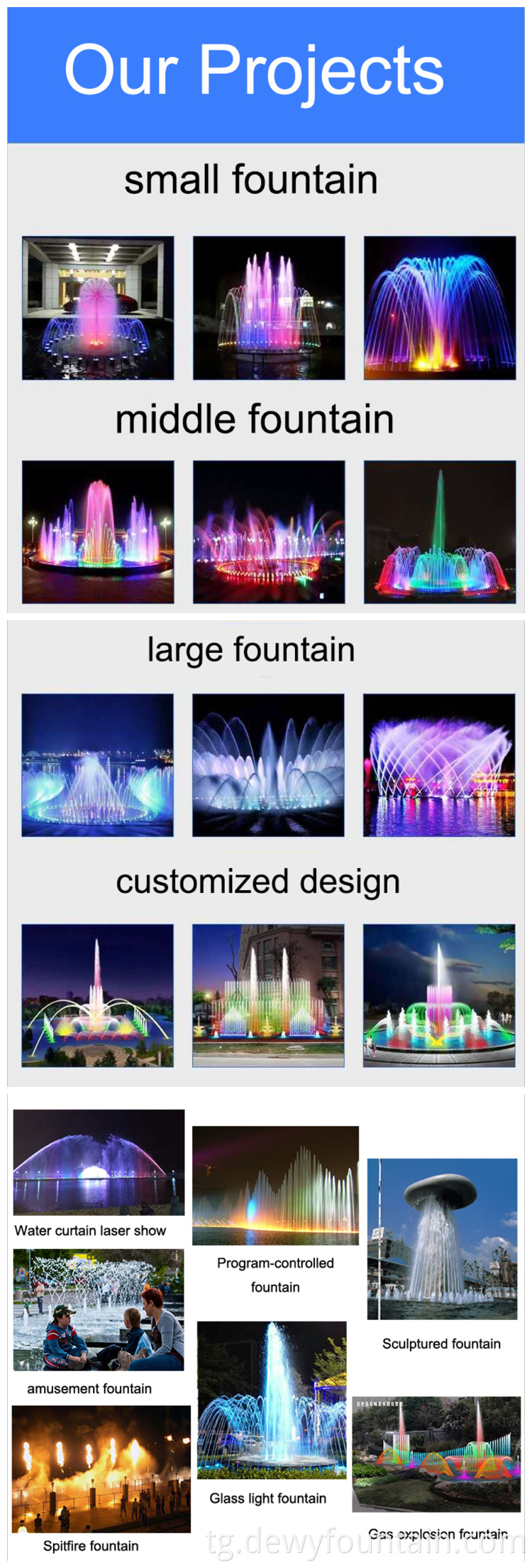 fountain nozzles, customized fountain, fire fountain, fountain lights, music fountain, outdoor fountains, laser lights
